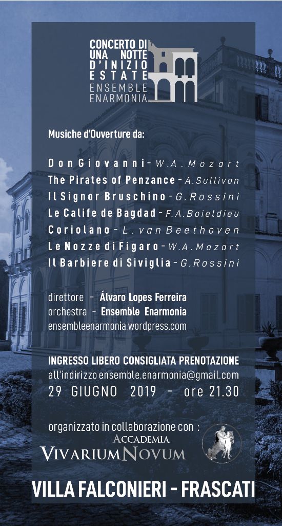 Si consiglia d'effettuare la prenotazione all’indirizzo di posta elettronica ensemble.enarmonia@gmail.com