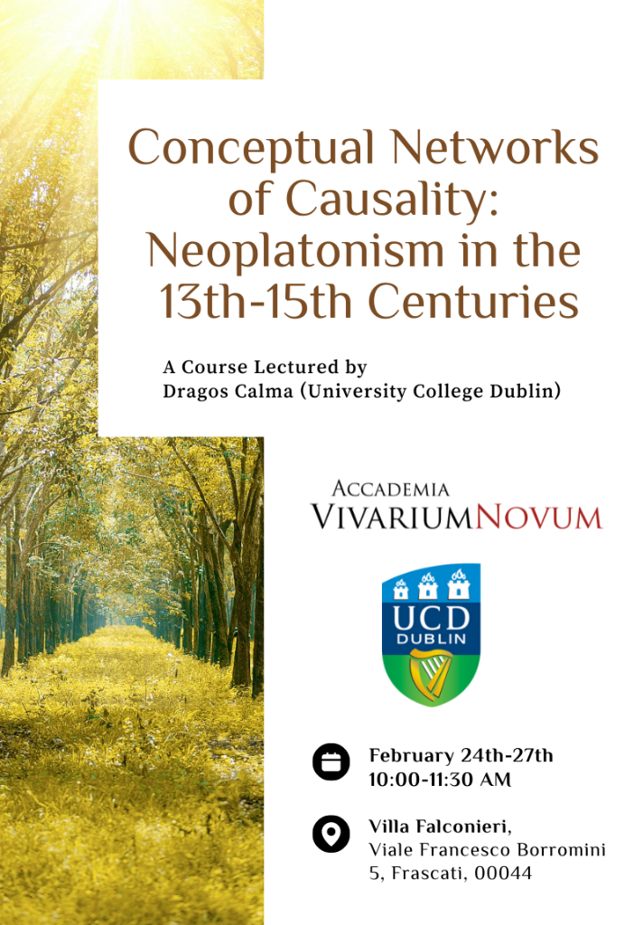 Siamo lieti d'invitarvi al ciclo di conferenze che terrà il professor Dragos Calma (University College Dublin), Conceptual networks of causality: Neoplatonism in the 13th-15th centuries.