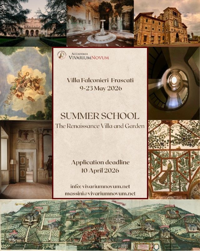 Participants will be housed in the historic Villa Falconieri, currently home to the Accademia Vivarium novum, which provides an excellent example of a Renaissance villa combining the ancient concept of otium with the theme of villeggiatura (life in the villa) in close relationship with nature (wild, domesticated, cultivated or formally designed), amidst woods, orchards, fields and gardens.