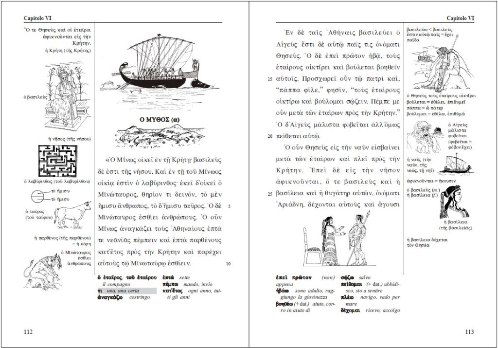 3. esempi del sistema Athènaze tratti dai capitoli dei volumi I e II;